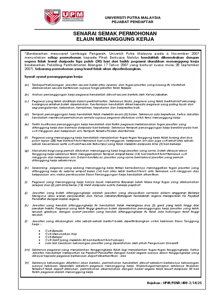 Senarai Semak Dan Borang Permohonan Elaun Menanggung Kerja Pdf