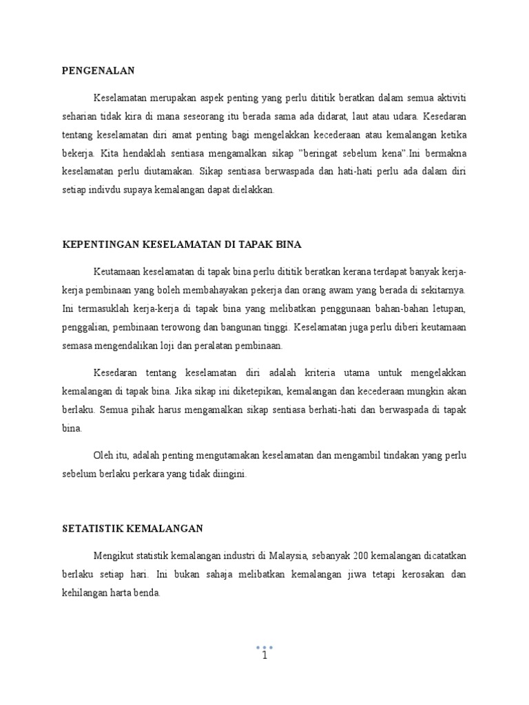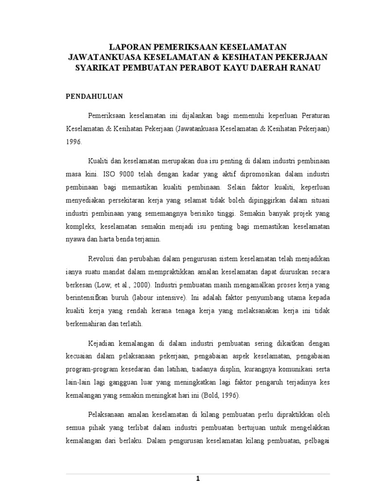 Contoh Laporan Keselamatan Di Tempat Kerja